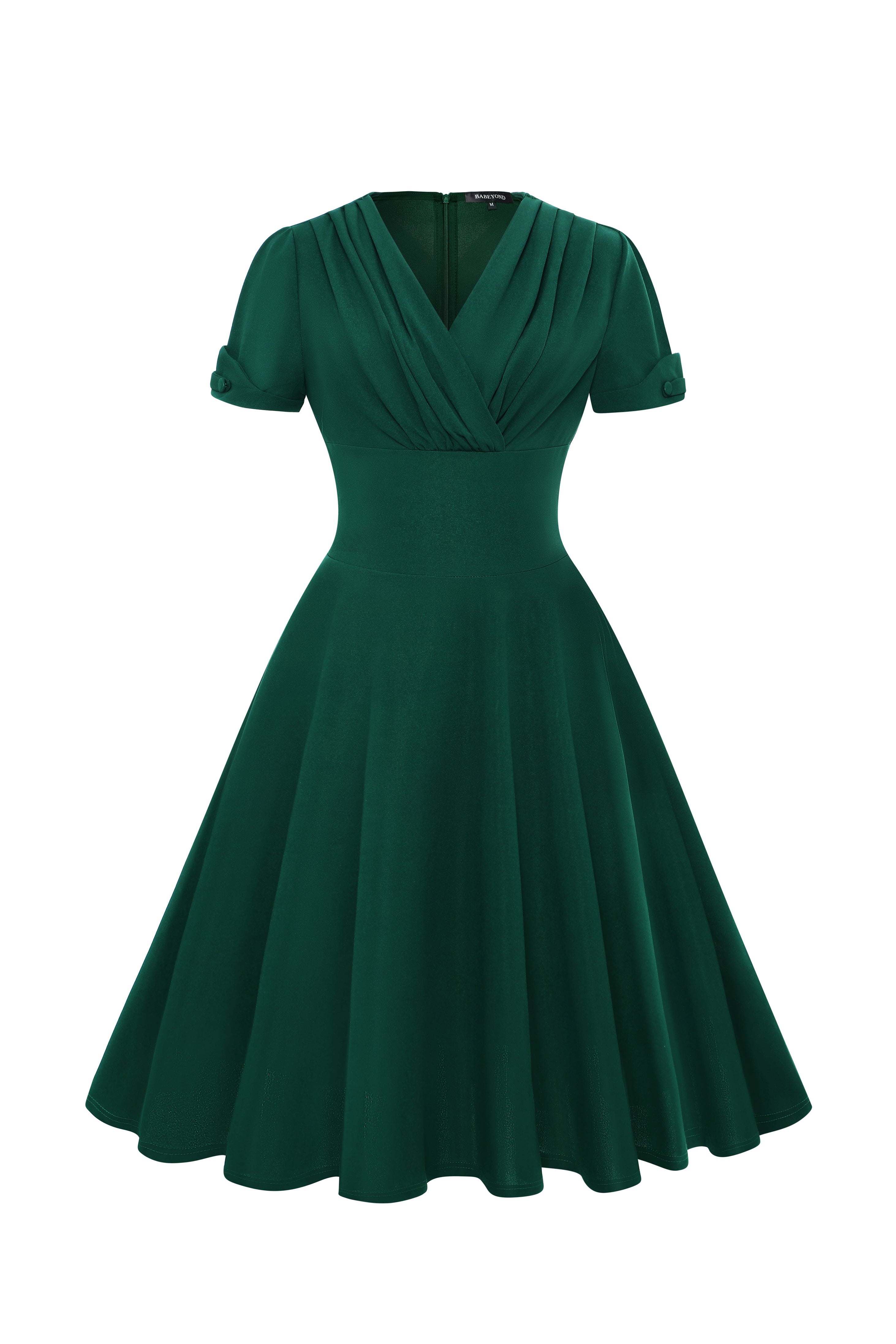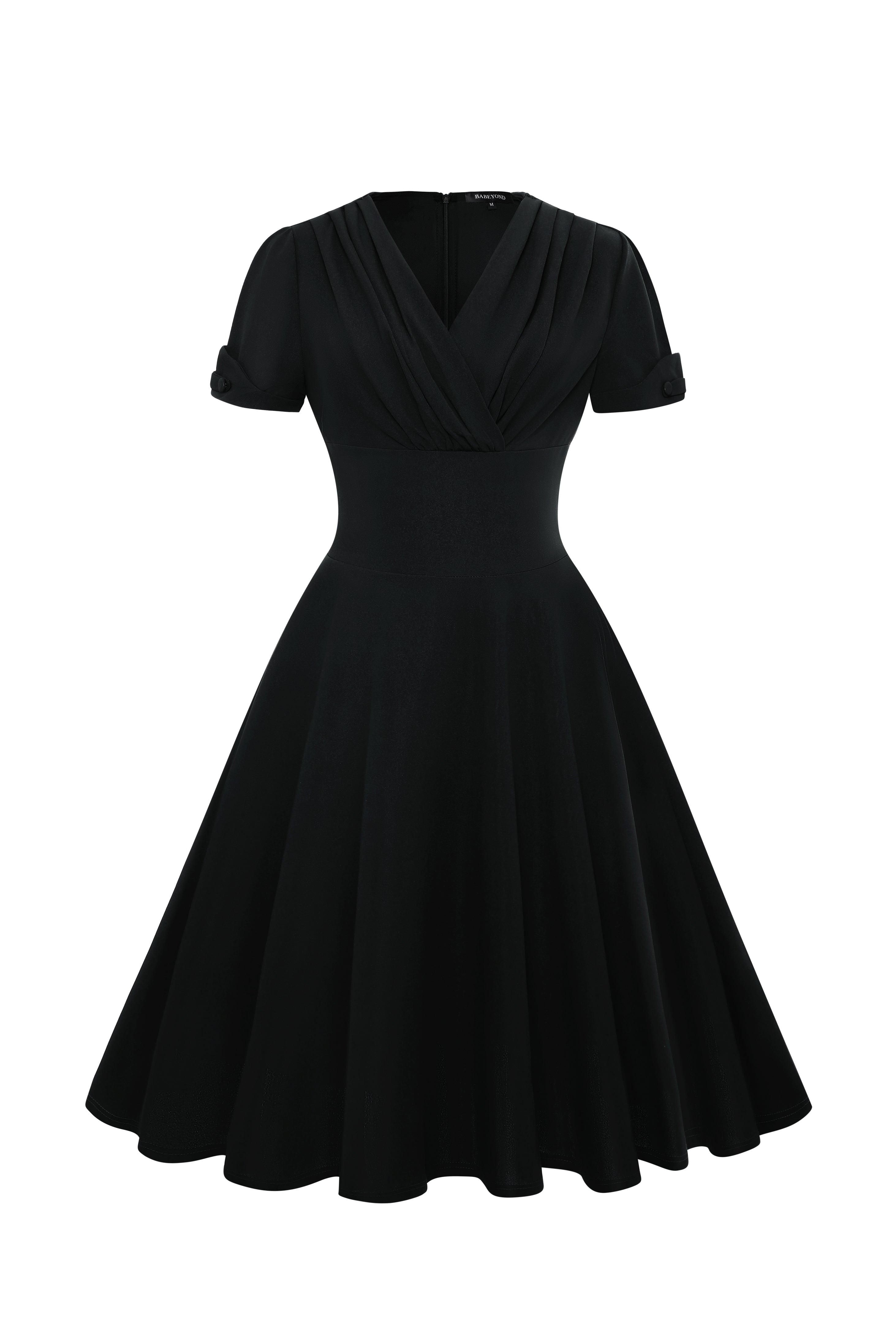 Designed for both style and comfort, this swing dress features a pleated bodice that enhances the bust line and a fitted waistline to create a flattering hourglass shape. The folded short sleeves add a neat, structured look, while the flared skirt offers ease of movement and all-day comfort.