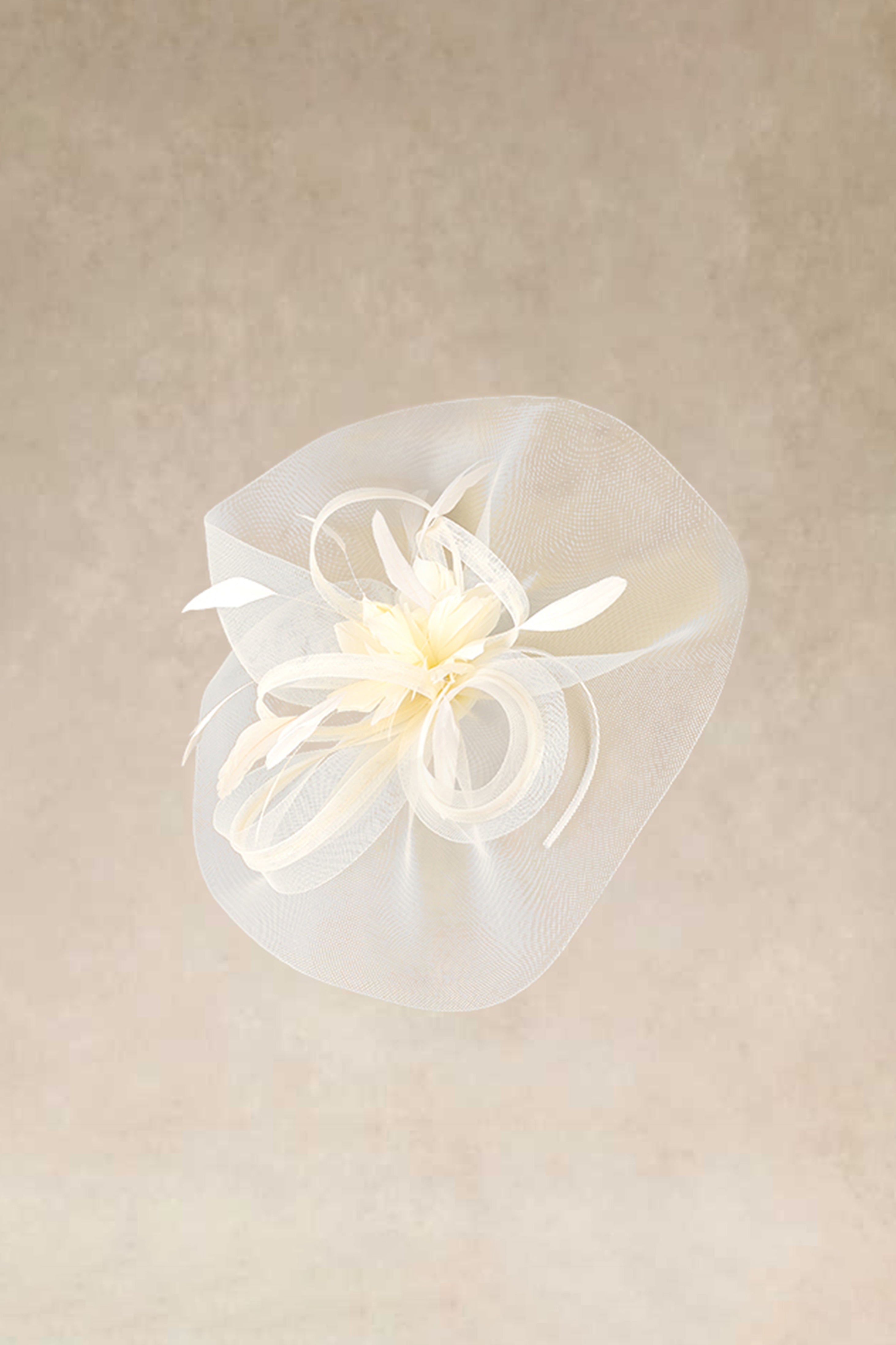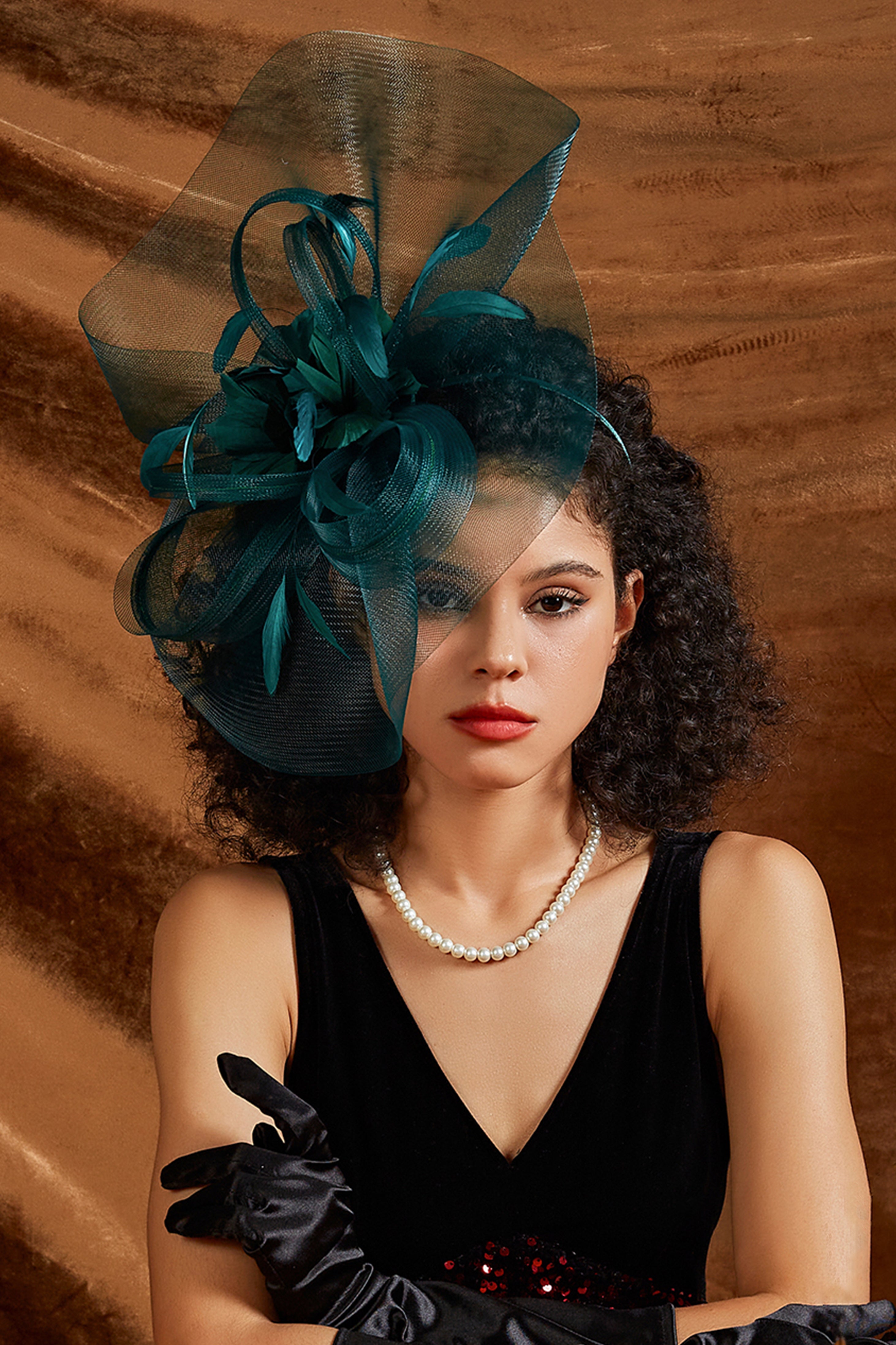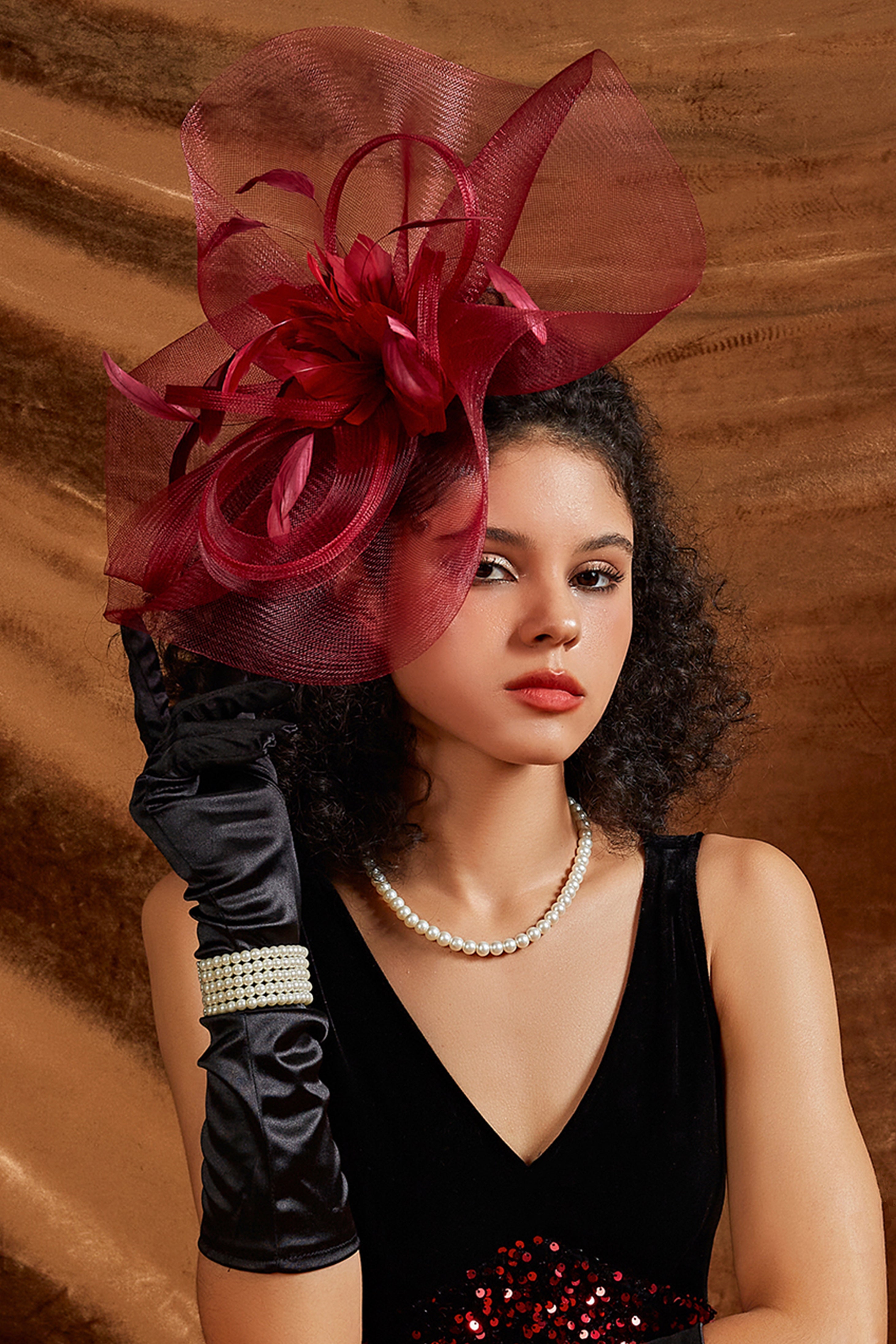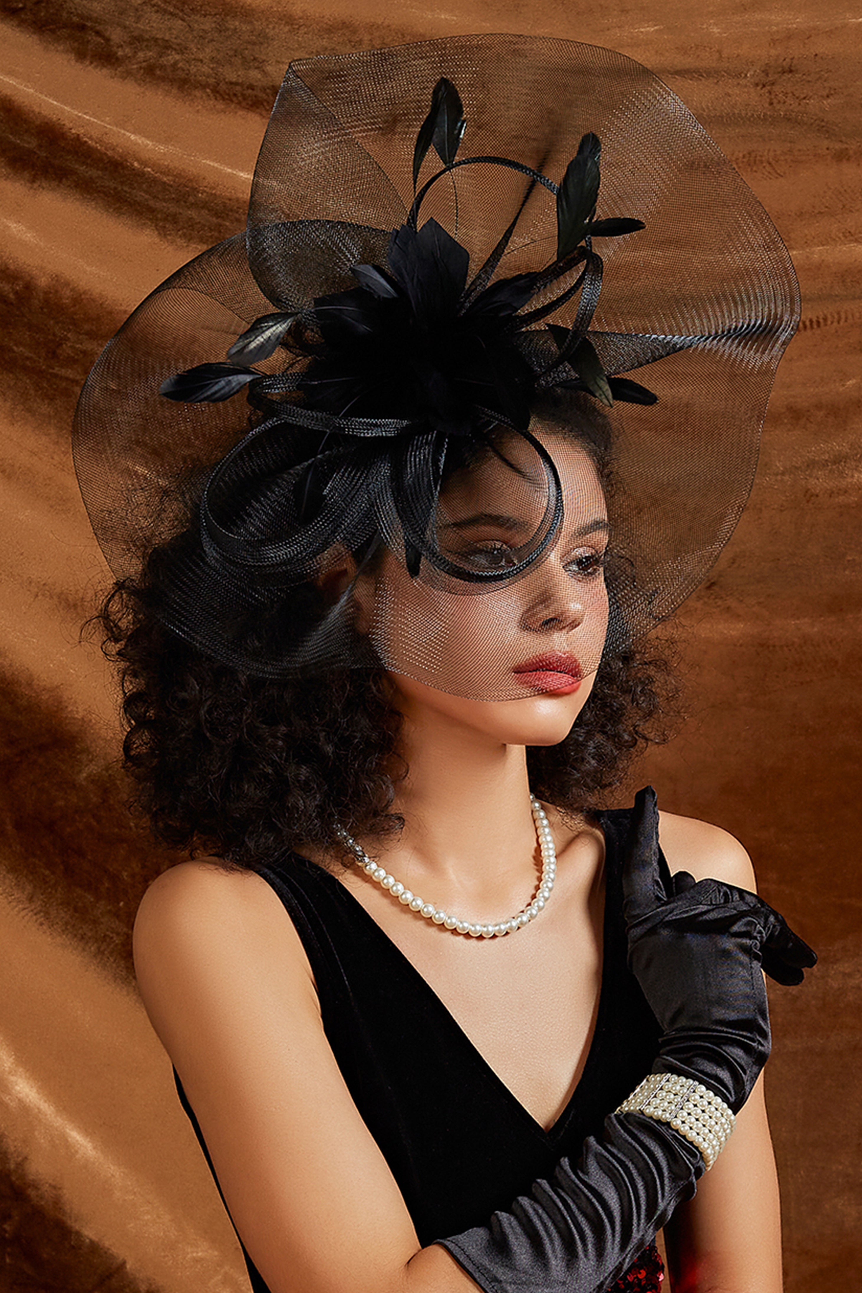 This dreamy wavy brim mesh fascinator features a unique wave-shaped wide brim, accented with satin ribbon and feather bow, offering a stylish and elegant touch perfect for weddings, tea parties, or racing events.