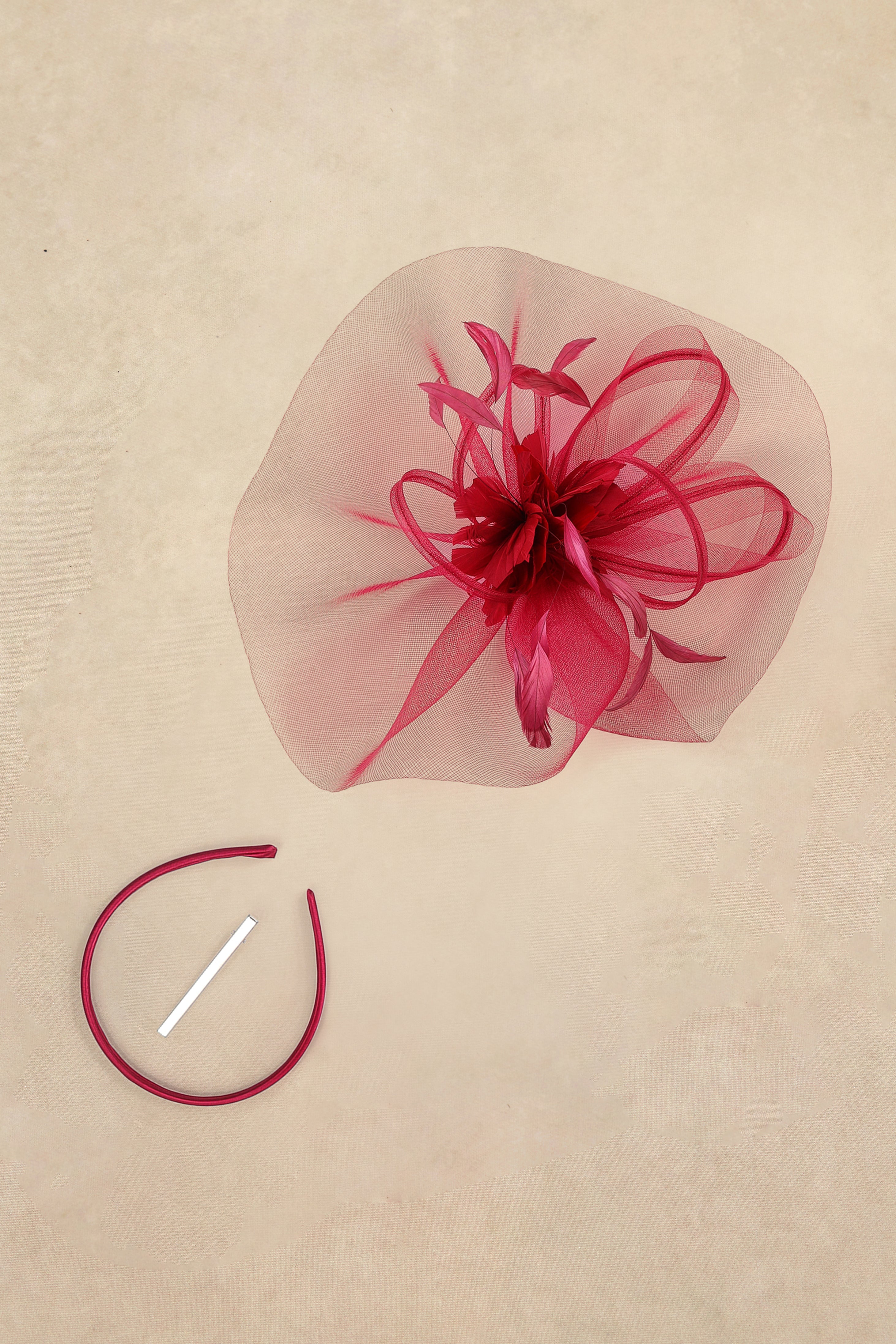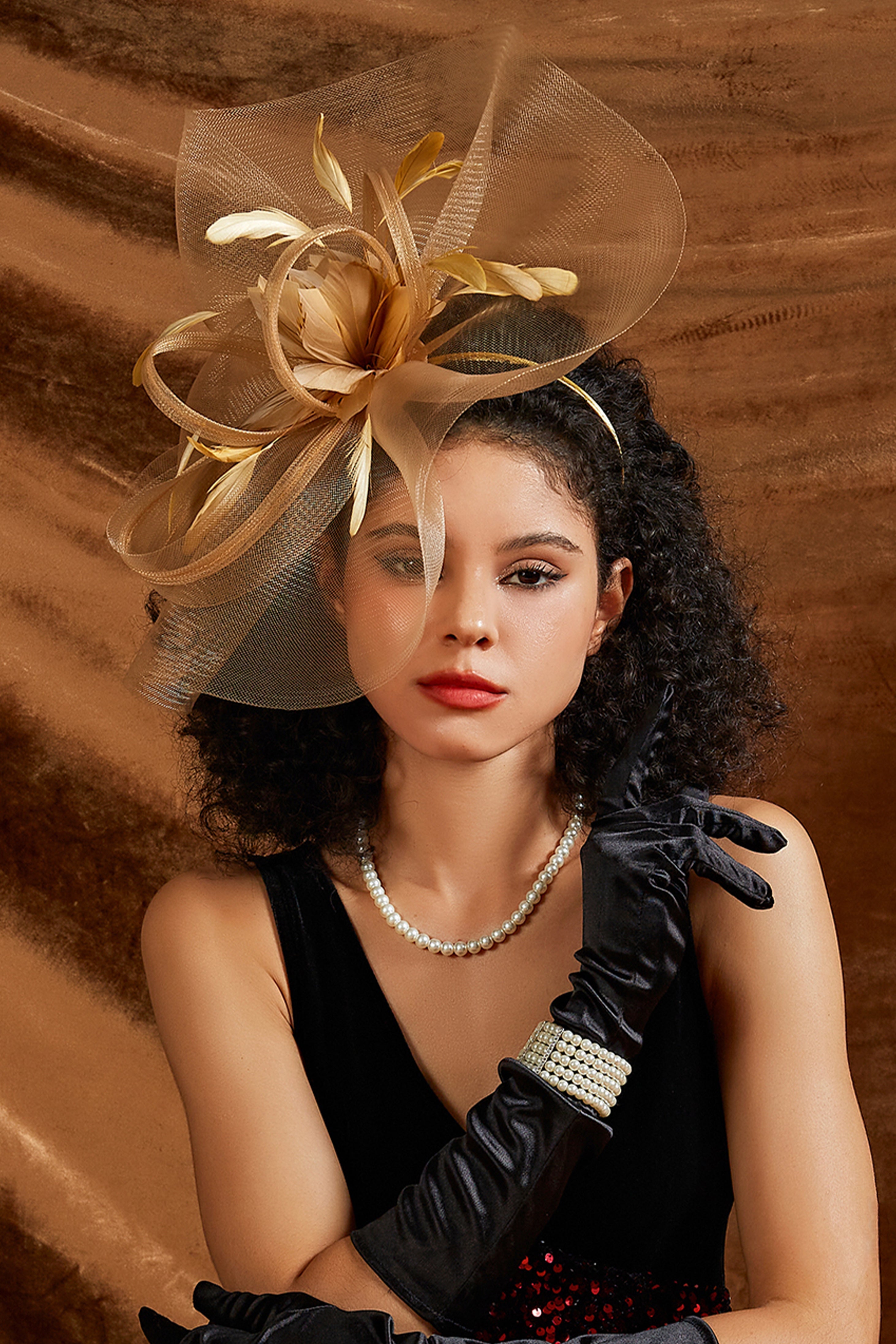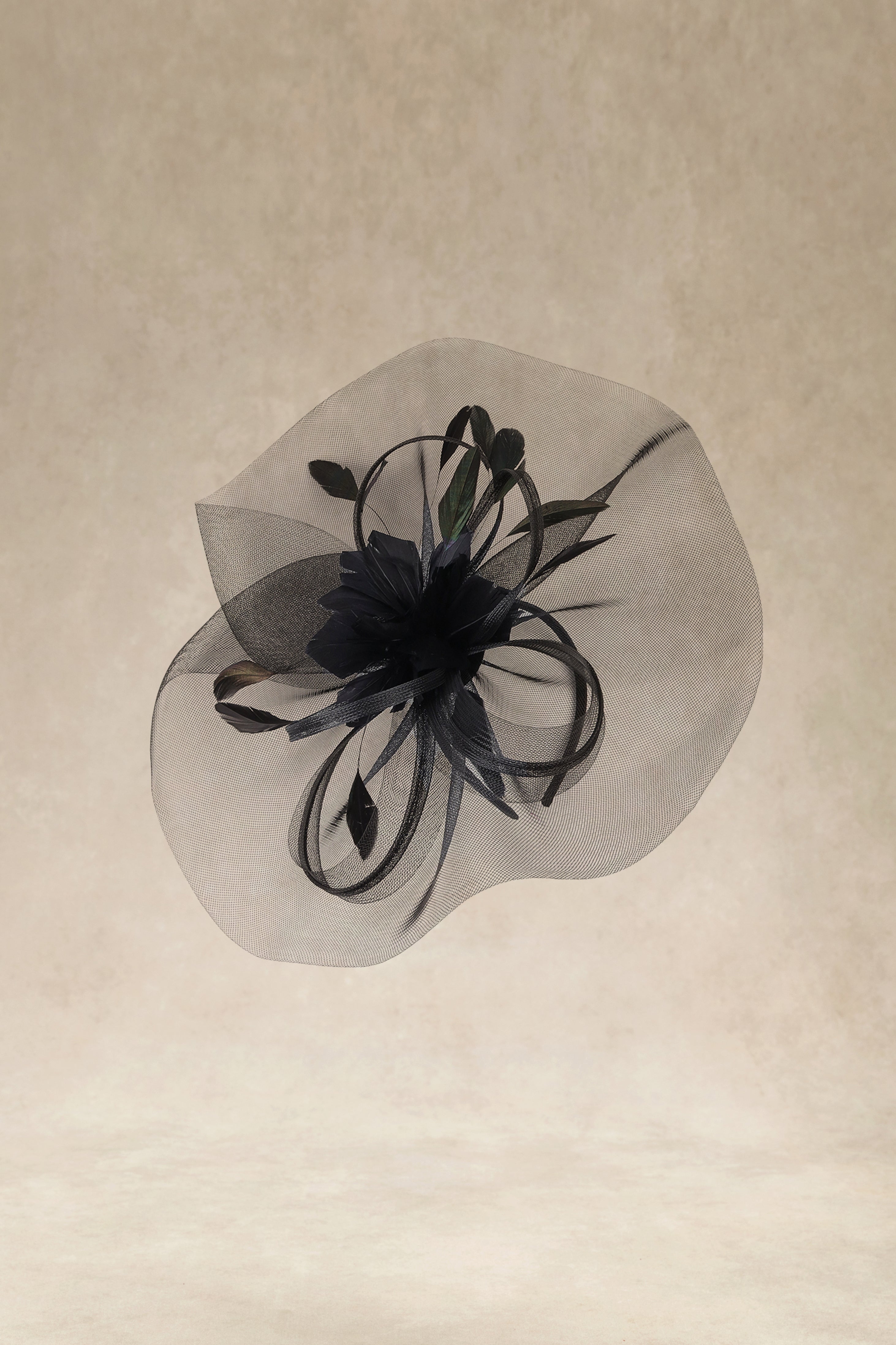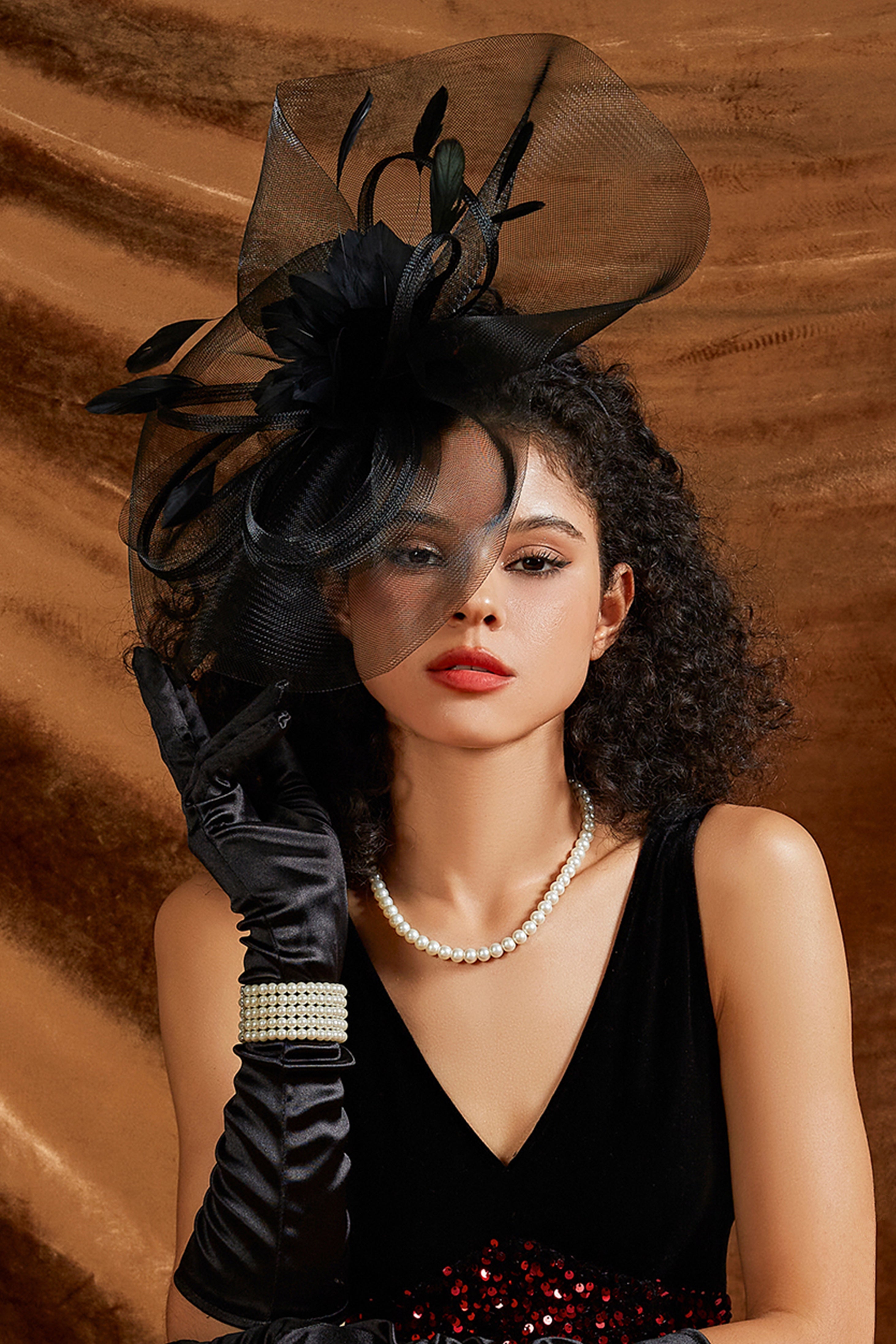 This dreamy wavy brim mesh fascinator features a unique wave-shaped wide brim, accented with satin ribbon and feather bow, offering a stylish and elegant touch perfect for weddings, tea parties, or racing events.