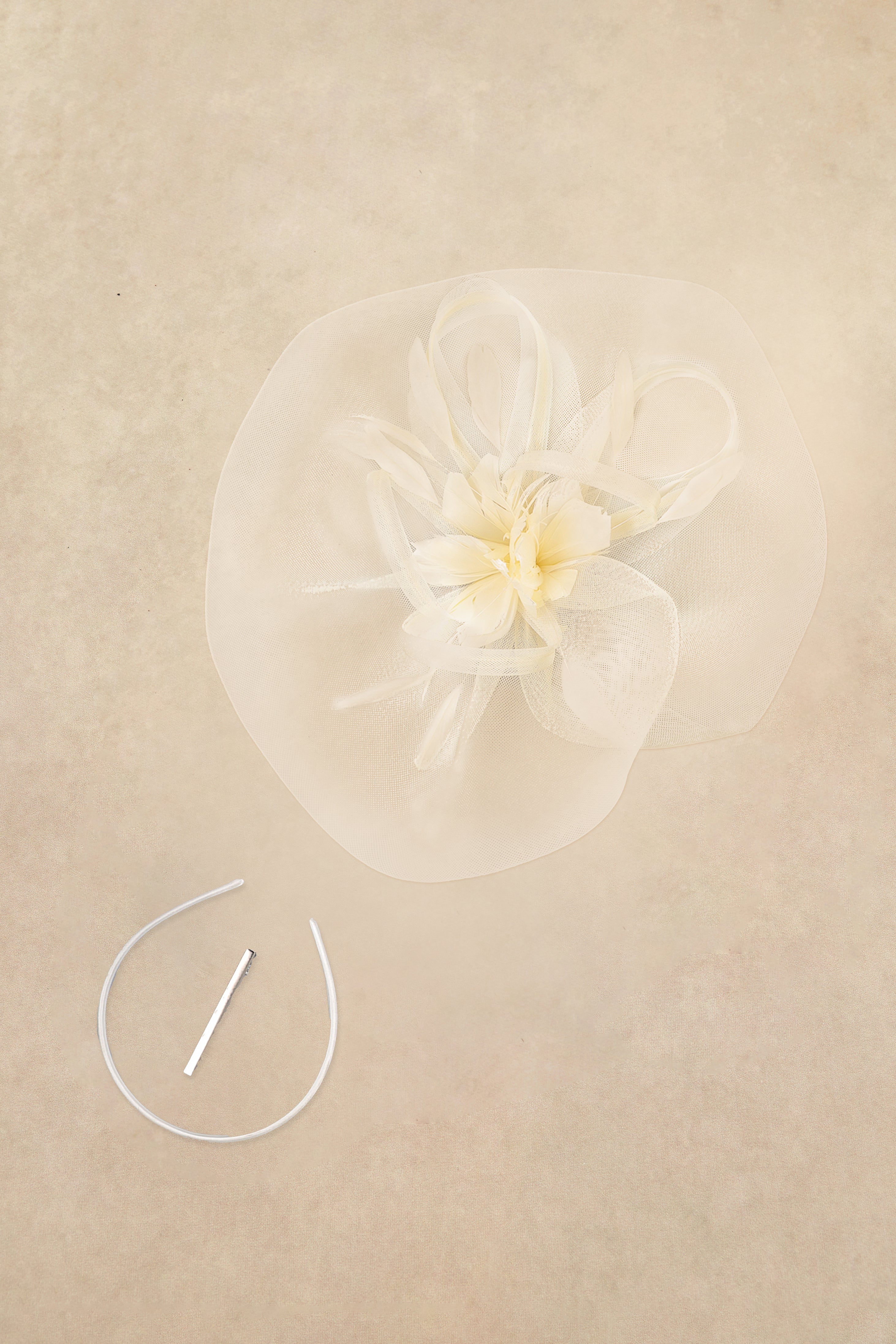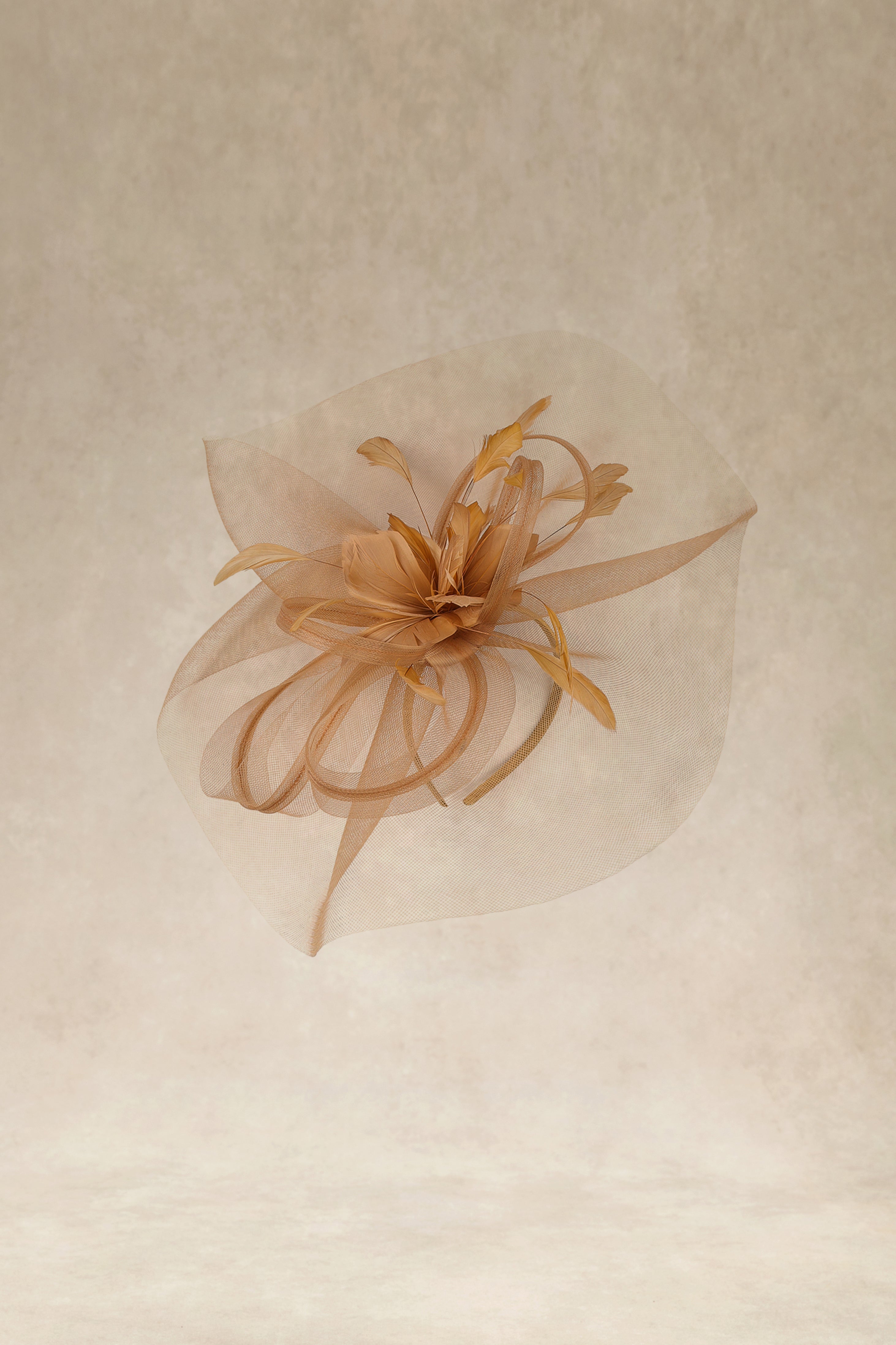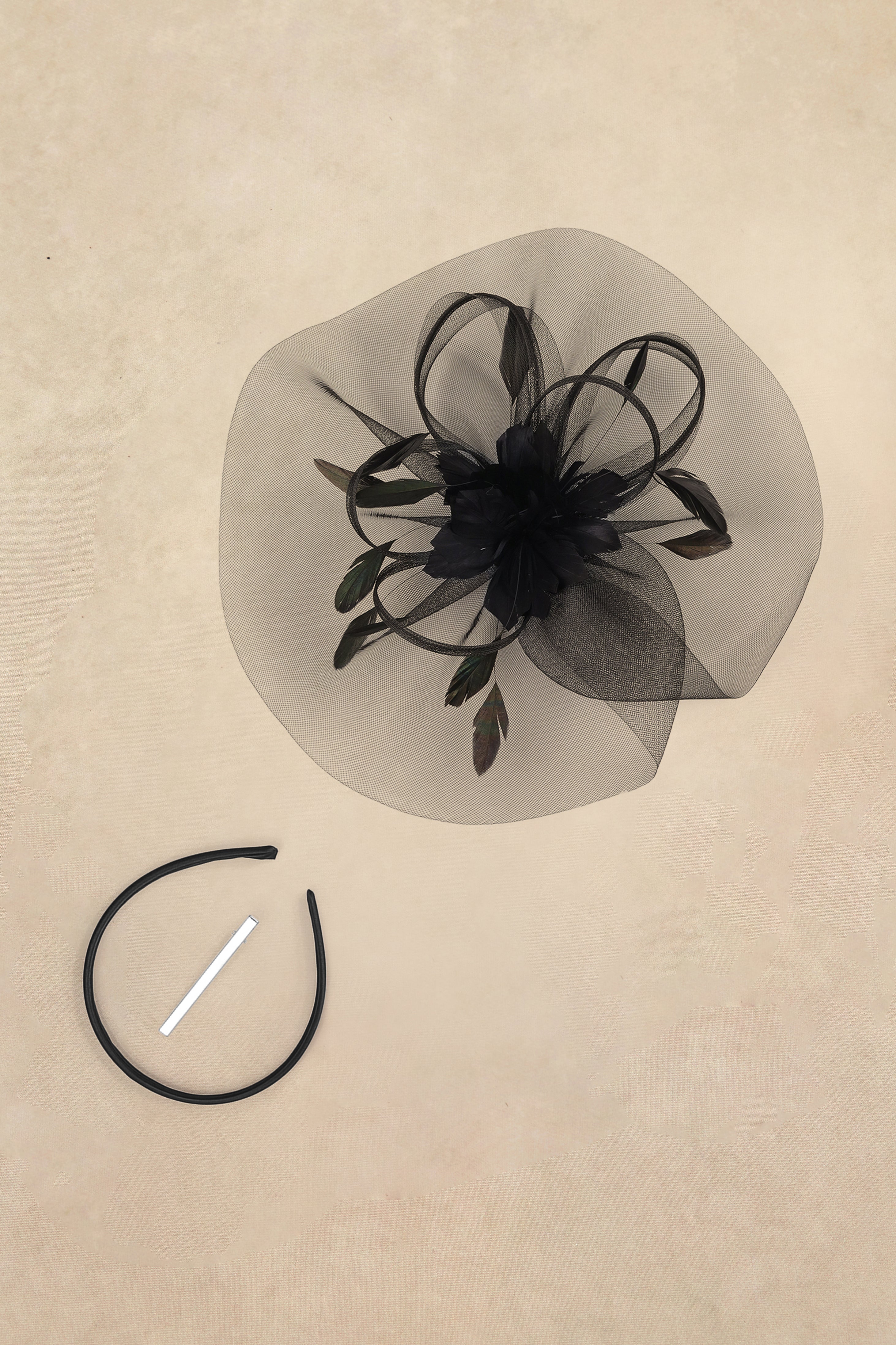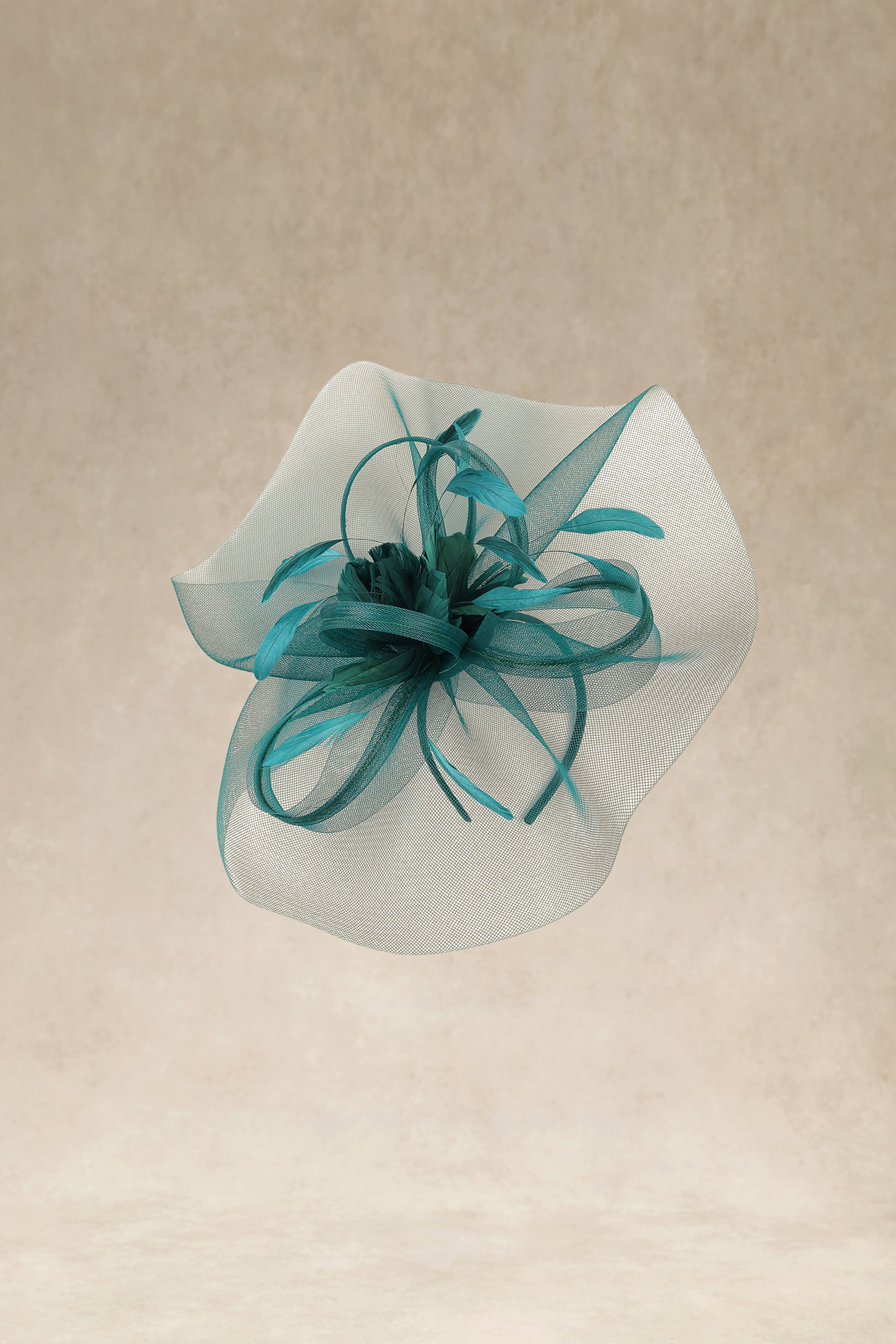 This dreamy wavy brim mesh fascinator features a unique wave-shaped wide brim, accented with satin ribbon and feather bow, offering a stylish and elegant touch perfect for weddings, tea parties, or racing events.
