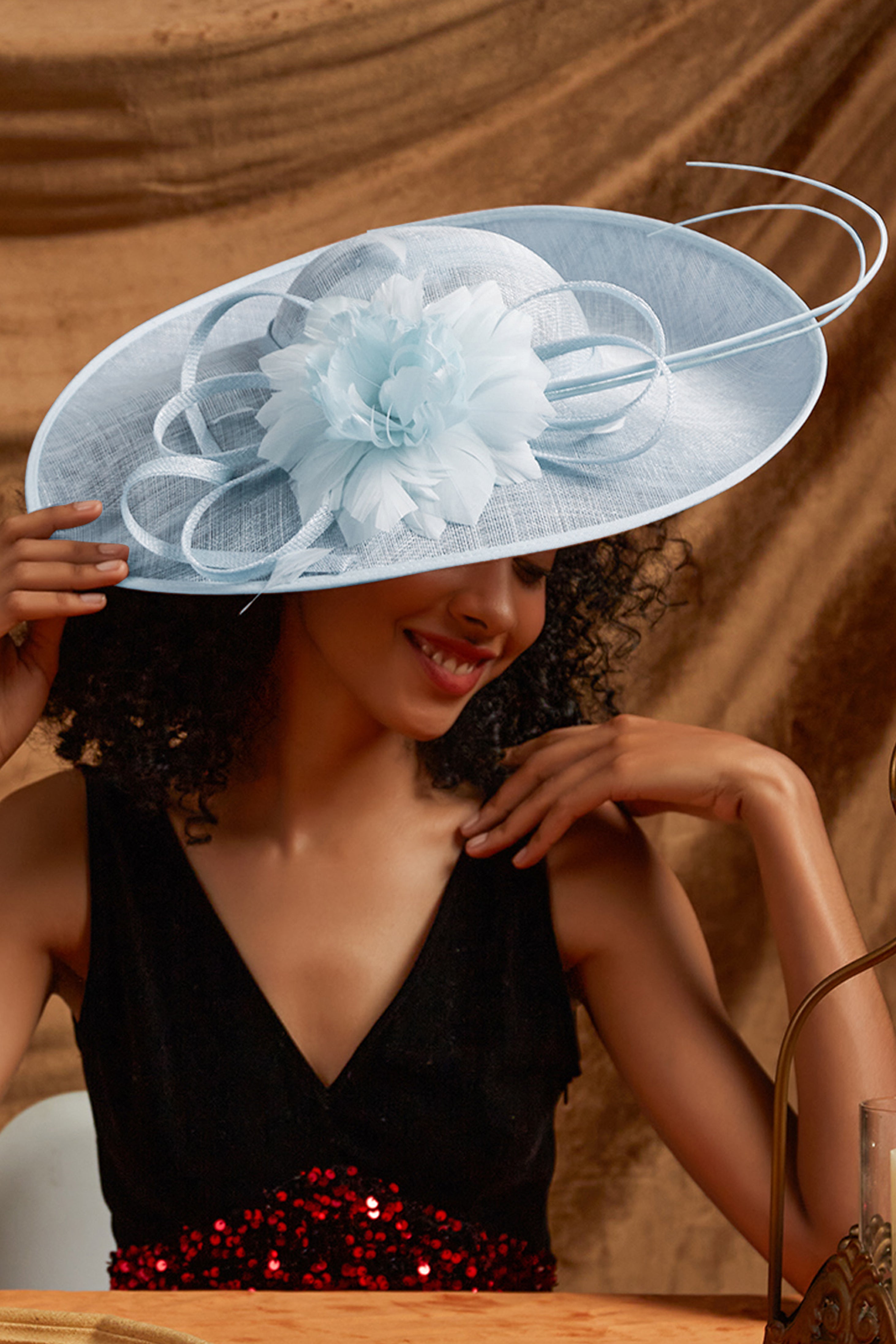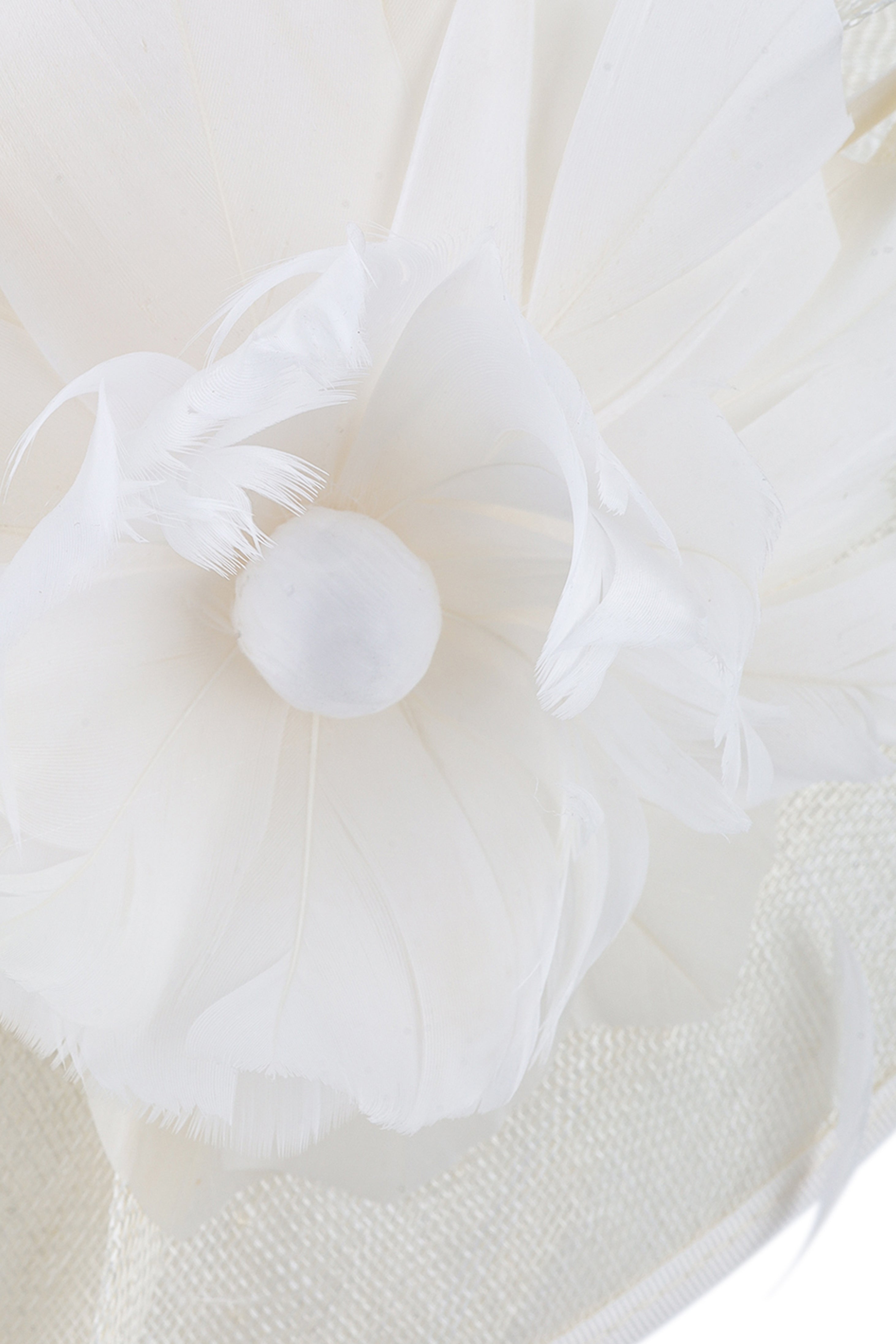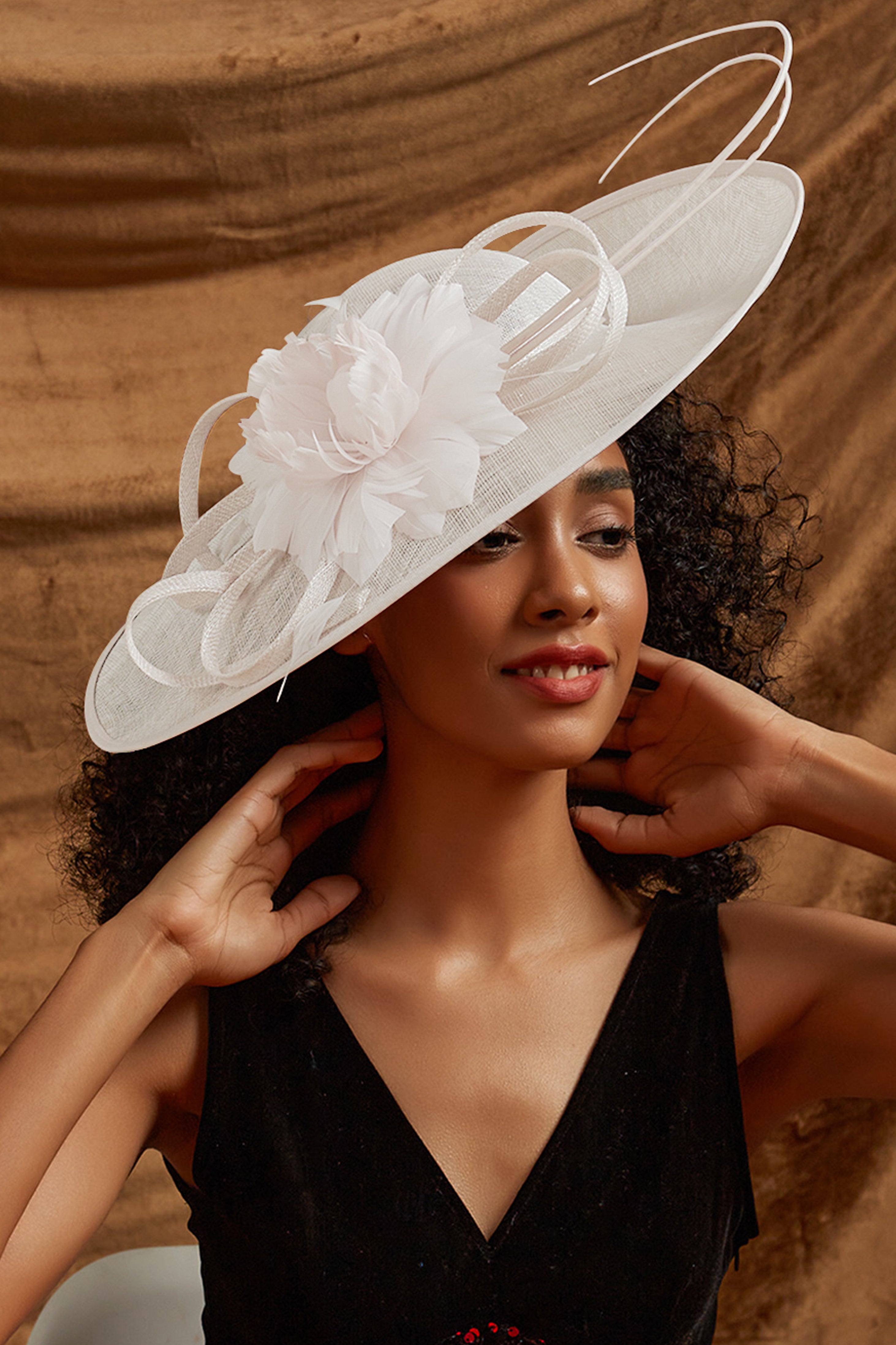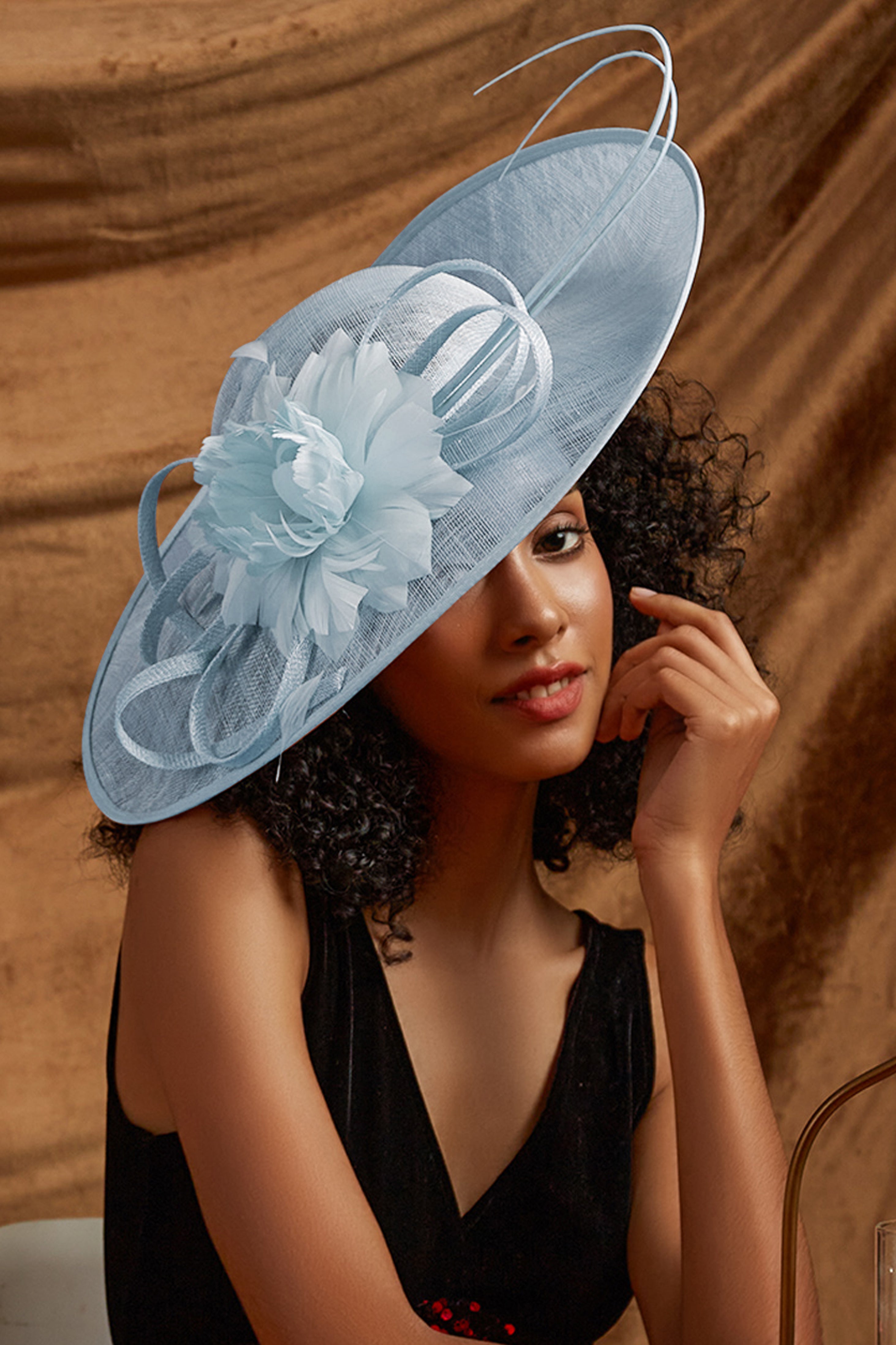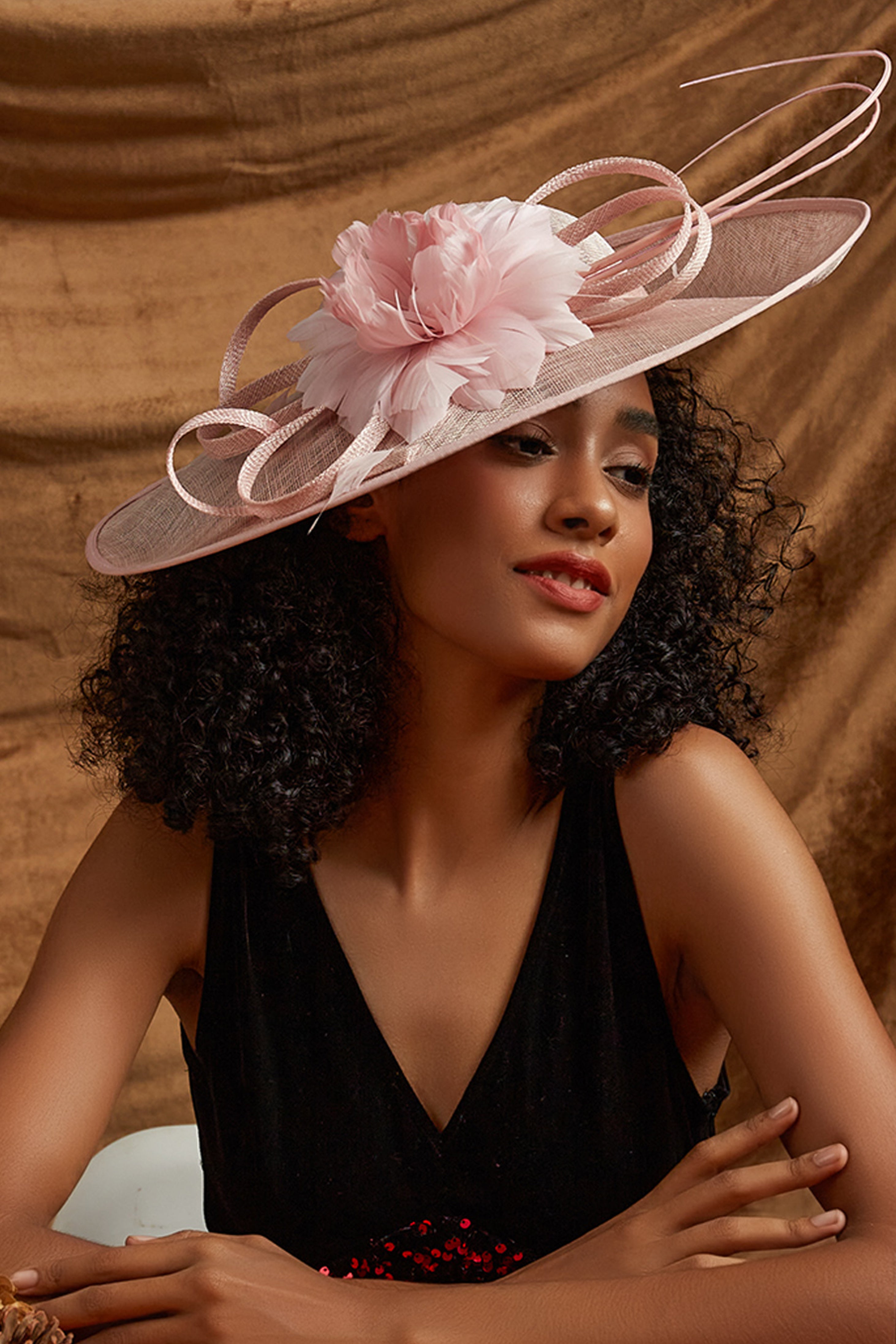 A sophisticated fascinator with a graceful floral accent and artistic ribbon loops. Designed to add charm and elegance, making it perfect for weddings, garden parties, and race day events.