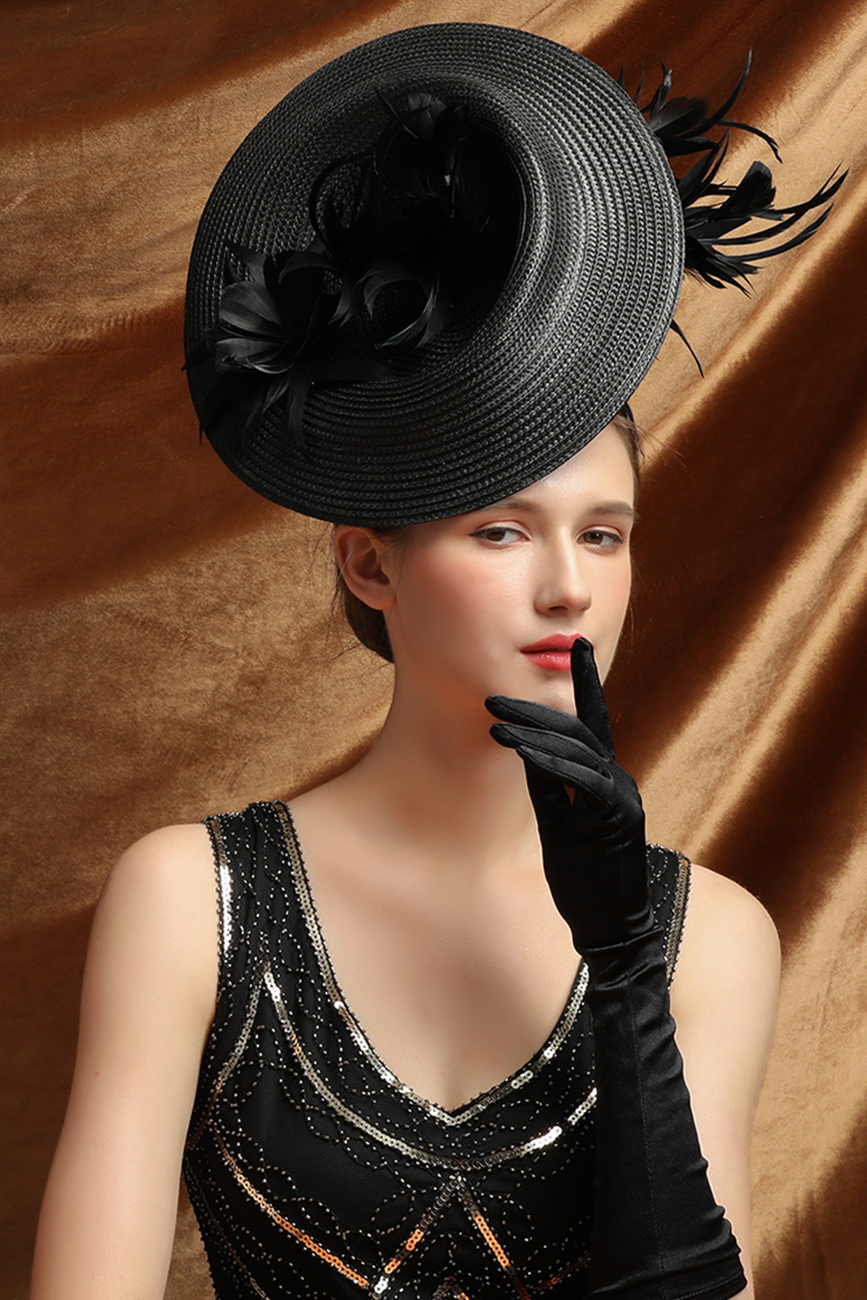 This elegant, oversized feather fascinator offers a dynamic, shifting visual effect from different angles, exuding sophistication and grace.
