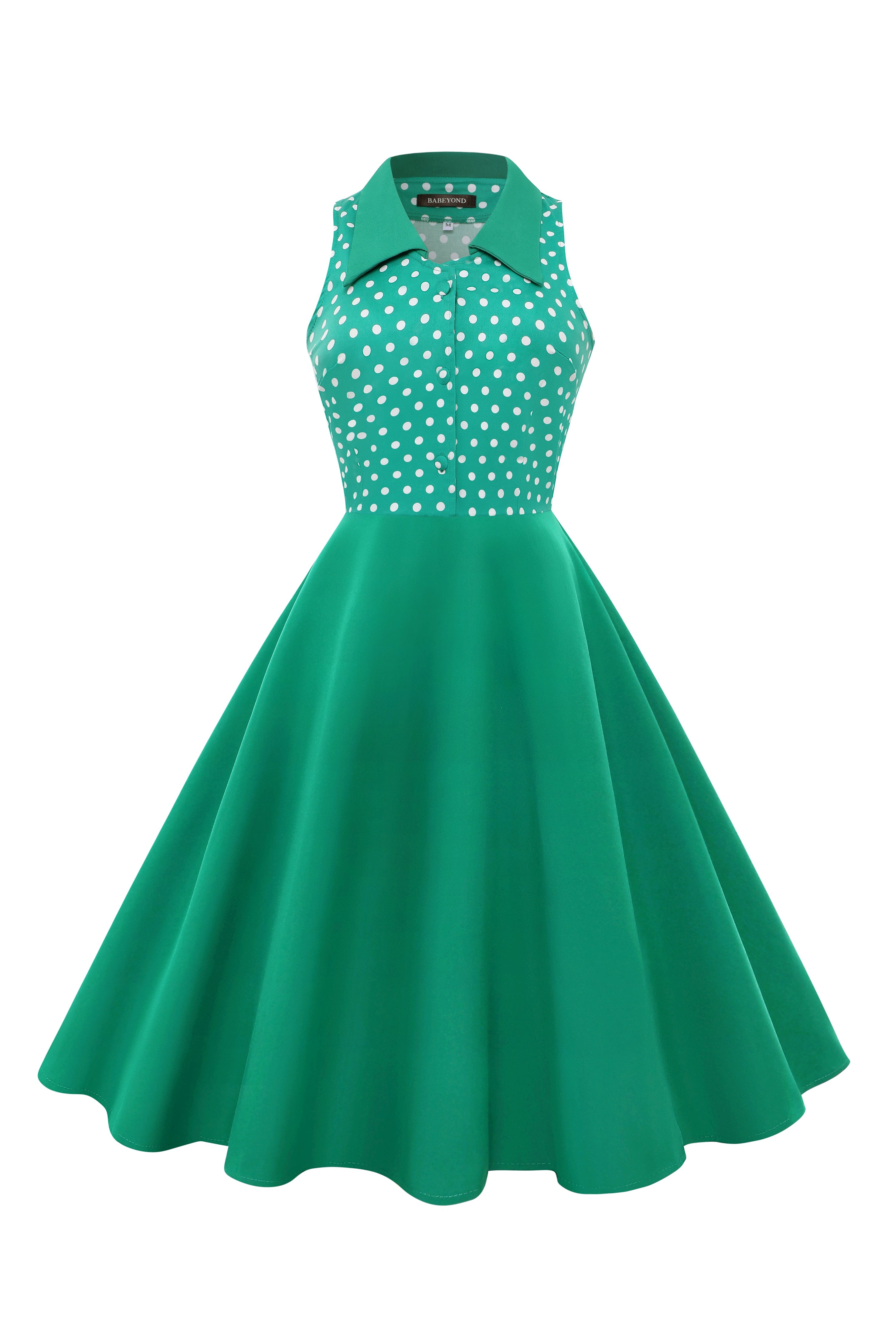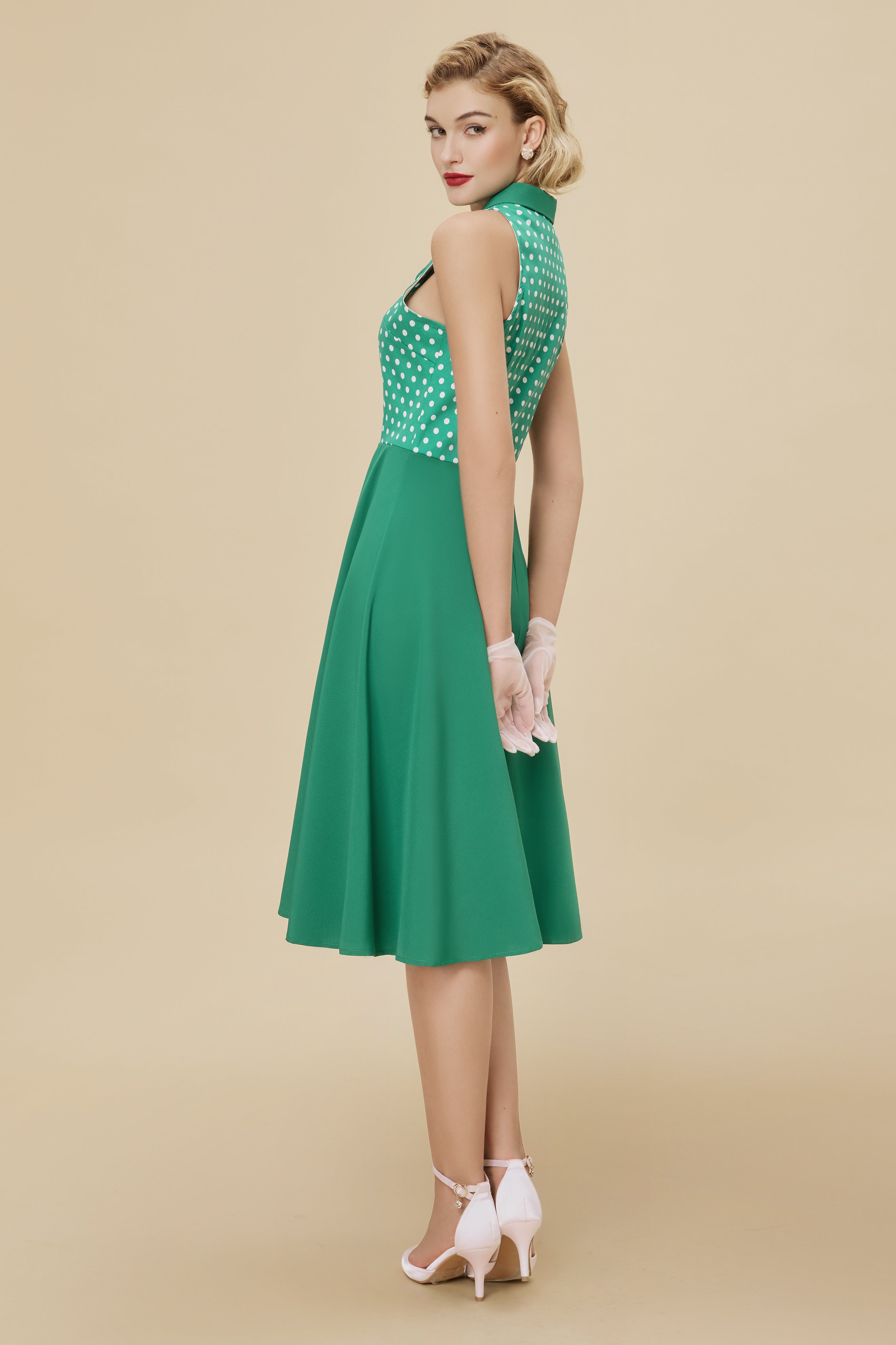 Polka Dot Bodice Sleeveless Retro Swing Dress