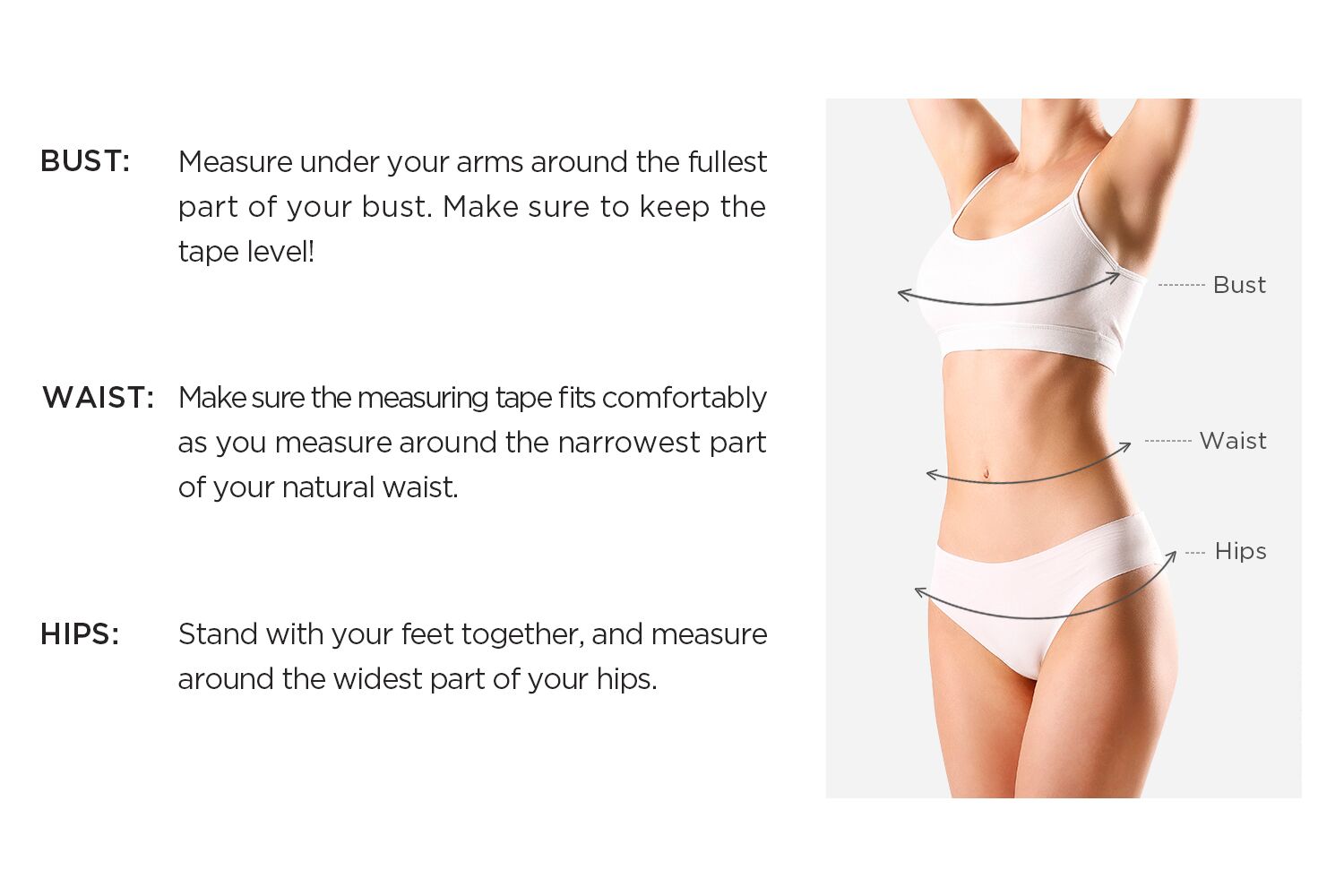 When taking your measurements, be sure to use a cloth measuring tape (or other options that we recommend in the absence of one) —not a metal measuring tape. This will ensure you're measuring your body accurately. In addition, measure only over bare skin or skin-tight clothes so as to ensure the most accurate measurement.