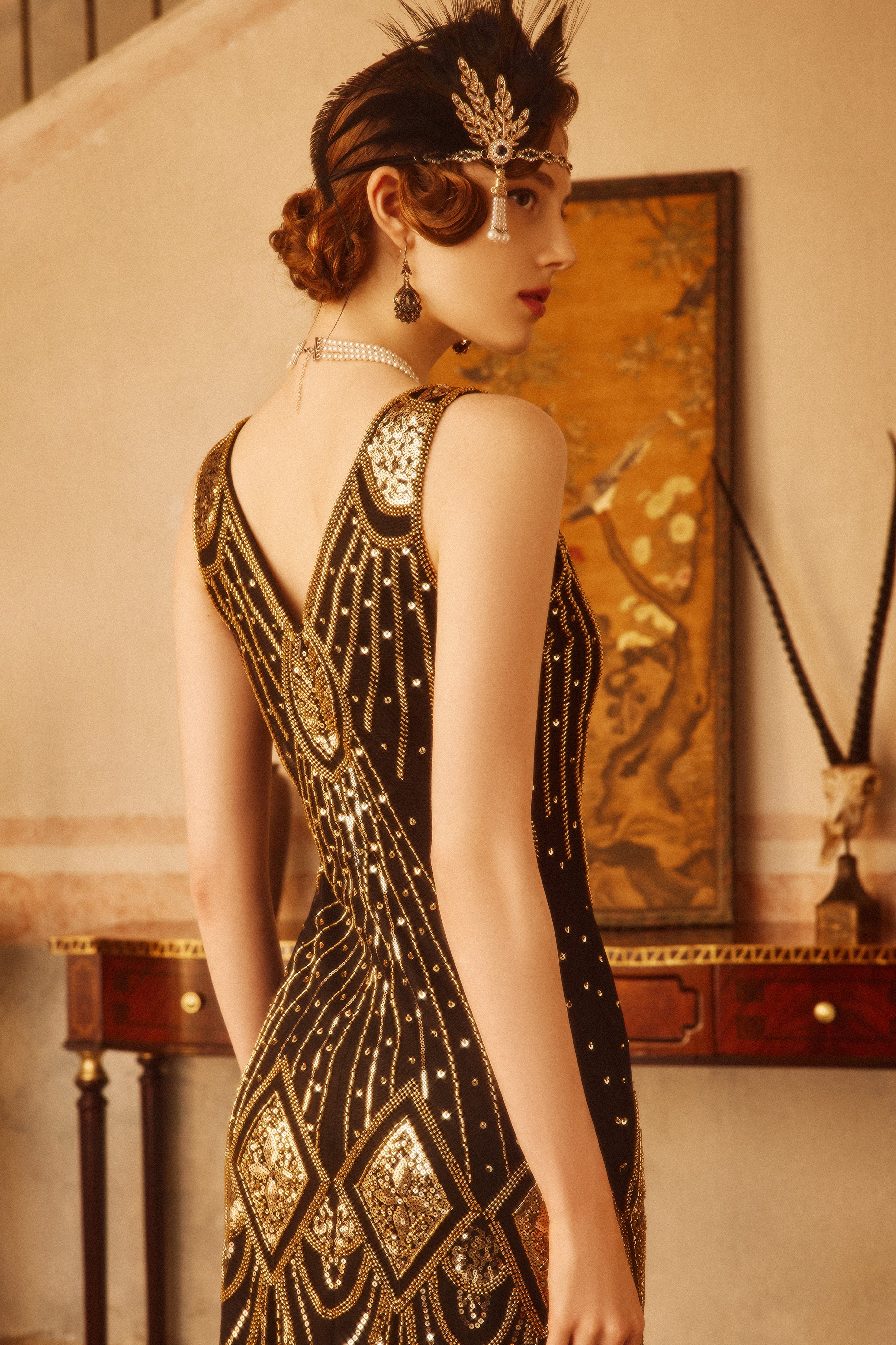 Channeling Josephine Baker's 1930s glamour from 'Zouzou', our designs with sequins and gemstones ensure you're the center of any event. Radiant sparkles and a beaded hem define this Roaring Twenties stunner.